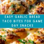 For a festive touch, arrange the garlic bread taco bites on a wooden board lined with parchment paper, surrounded by small bowls of salsa, guacamole, and sour cream. You could even skewer two bites each for a cute appetizer “kabob.” Serve at parties on colorful platters for an eye-catching spread that invites everyone to dig in.