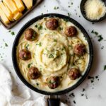 This Garlic Butter Meatballs recipe features tender, flavorful meatballs served over a luscious creamy Parmesan linguine. The dish combines savory ground beef meatballs cooked in garlic butter with a rich, cheesy cream sauce tossed with perfectly cooked linguine, making it a comforting and satisfying meal.