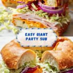 For a fun presentation, serve the Giant Party Sub Recipe on a large wooden board with colorful bowls of condiments and sides surrounding it. You can also skew the sandwich slices with festive toothpicks, making it easy for guests to grab and enjoy without fuss—perfect for mingling at your next party.