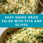 The classic Greek Orzo Salad Recipe includes feta cheese, which is not vegan. However, you can easily swap in a vegan cheese alternative or omit it altogether for a plant-based version.