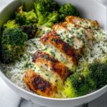 This recipe features flavorful grilled chicken breasts paired with vibrant broccoli florets, served over a bed of rice or quinoa and topped with a tangy, creamy garlic sauce. It’s a wholesome, satisfying meal perfect for a healthy lunch or dinner.