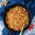 A flavorful Ham Fried Rice with Pineapple recipe that combines savory ham, sweet pineapple, and aromatic garlic and ginger, stir-fried with rice and eggs to create a delicious and easy-to-make meal perfect for using leftover ingredients.