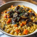 Begin by heating the olive oil in a large pan over medium heat. Add the finely chopped shallots and minced garlic, sautéing them until they become soft and fragrant—an essential base that breathes life into the risotto. Then toss in the sliced mushrooms and cook until they’re tender and have released their earthy juices. This step sets the savory groundwork you’ll be building upon.