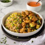 This Hibachi Chicken recipe brings the classic Japanese steakhouse experience right to your kitchen. Featuring tender boneless chicken thighs stir-fried in a savory hoisin and soy sauce glaze, complemented by sautéed fresh vegetables and flavorful fried rice. A creamy, spicy Yum Yum sauce made from mayonnaise, sriracha, and paprika adds the perfect finishing touch. Ready in just 30 minutes, it’s a delicious and quick meal for four.