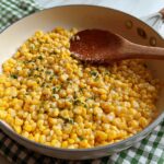 - Finish and Serve: Stir in the thinly sliced fresh chives or scallions, then remove the skillet from the heat. Transfer the corn to a serving dish and garnish with additional chives or scallions if desired. Serve hot and enjoy the sweet, buttery flavor.