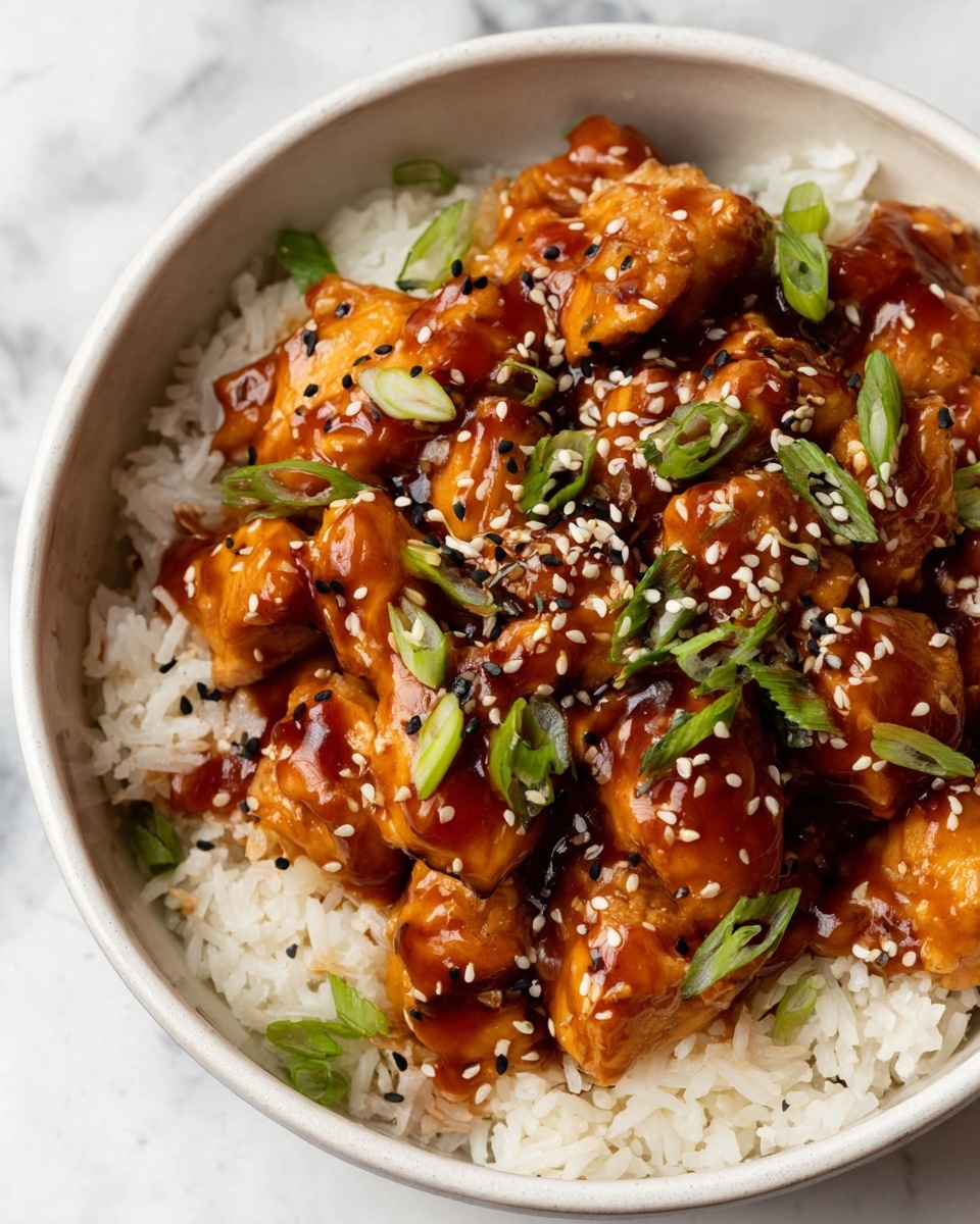 At this point, you have two delicious options — leave the chicken thighs whole as tender, juicy pieces or shred them right in the slow cooker using two forks. The shredded version soaks up the sauce even more, making every bite a delight. Serve over steaming rice and sprinkle with chopped scallions and toasted sesame seeds for that final burst of flavor and color.