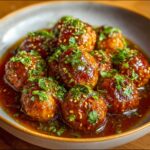 Sprinkle the meatballs with sesame seeds and freshly chopped parsley just before serving to add a pop of color and a hint of crunch that complements every bite.