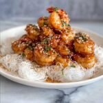 Crunchy and sweet Honey Prawns coated in a light, crispy batter and tossed in a glossy honey glaze. This dish stays crispy for ages and features a perfect balance of sweetness and savory notes from soy and Chinese cooking wine. Served with crunchy vermicelli noodles and garnished with sesame seeds and sliced green onions, it is a delightful appetizer or main course perfect for seafood lovers.