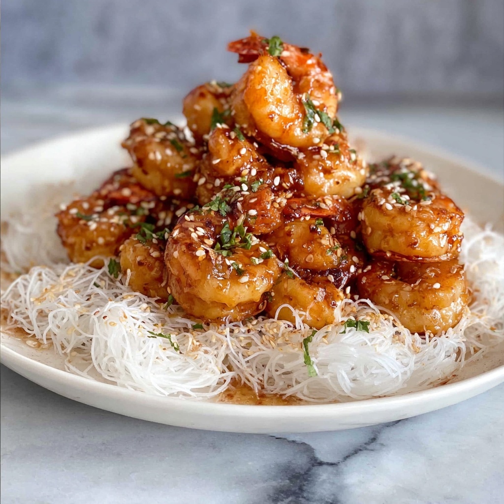 Quickly toss the hot, crispy prawns in the warm honey glaze so they are evenly coated. If you’re using vermicelli rice noodles, briefly deep-fry them until puffed and golden, then add them to the prawns for a delightful crunch contrast. Finish with a sprinkle of sesame seeds and sliced green onions for that final touch of flavor and color.
