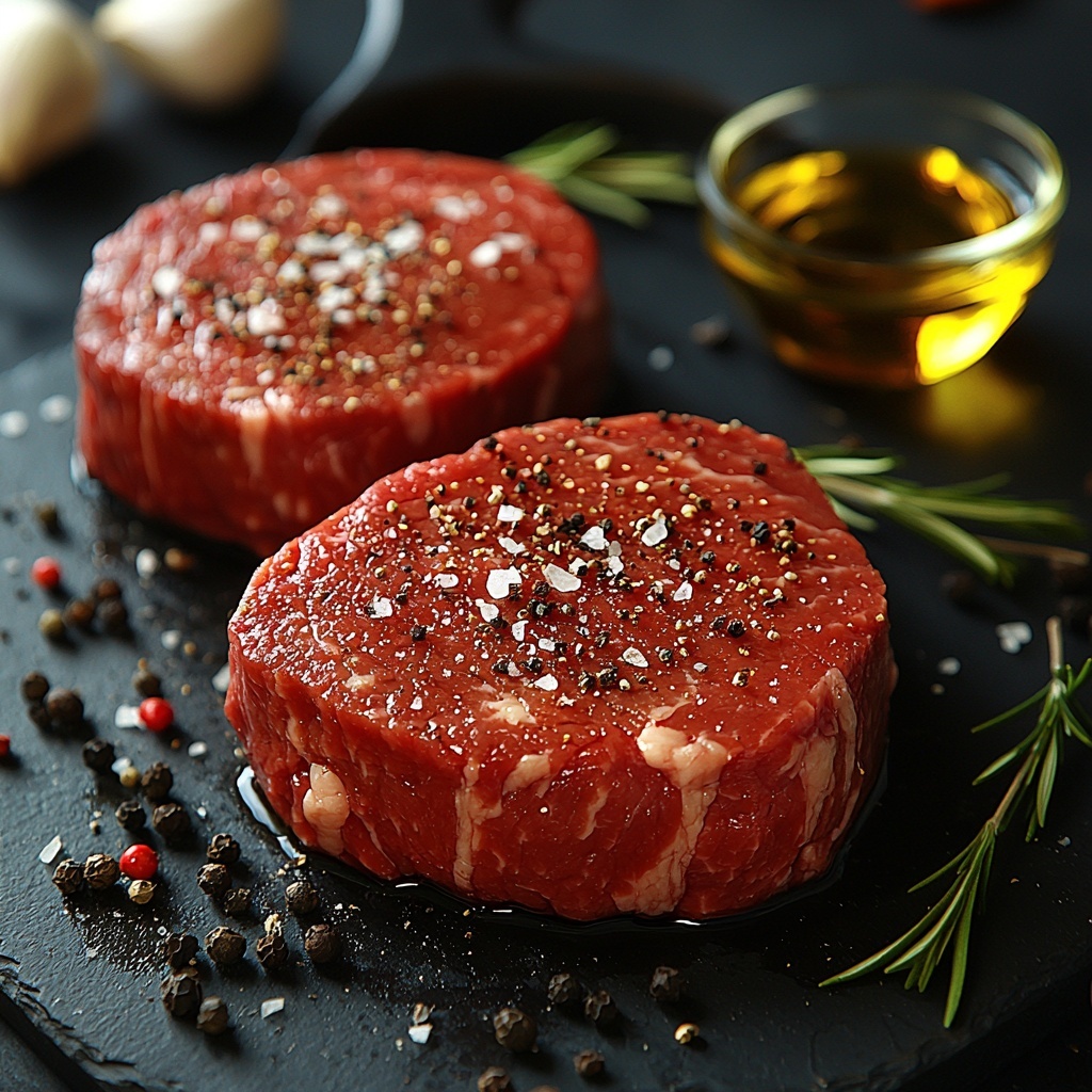 - 2 filet mignon steaks (6-8 oz, about 1.5” thick): Choose center-cut filets for even cooking and supreme tenderness.