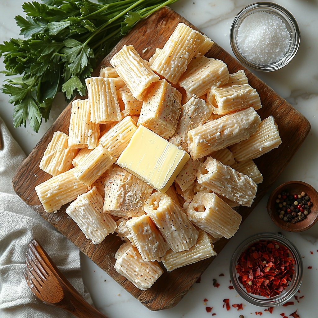 Don’t let the simplicity of the ingredients fool you—each one plays a crucial role in creating the perfect balance of flavor, texture, and visual appeal in this dish. From the tender chicken bites to the creamy cheese sauce and al dente rigatoni, these essentials come together beautifully to deliver that indulgent experience we all crave.
