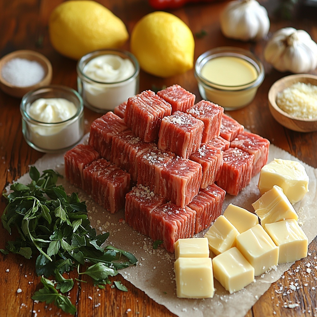 This Indulgent Garlic Butter Steak with Creamy Parmesan Rigatoni Recipe comes together with ingredients that are straightforward, yet essential. Each one plays a vital role, from the firm rigatoni that holds onto the sauce just right to the fresh garlic that infuses the dish with incredible aroma and depth.