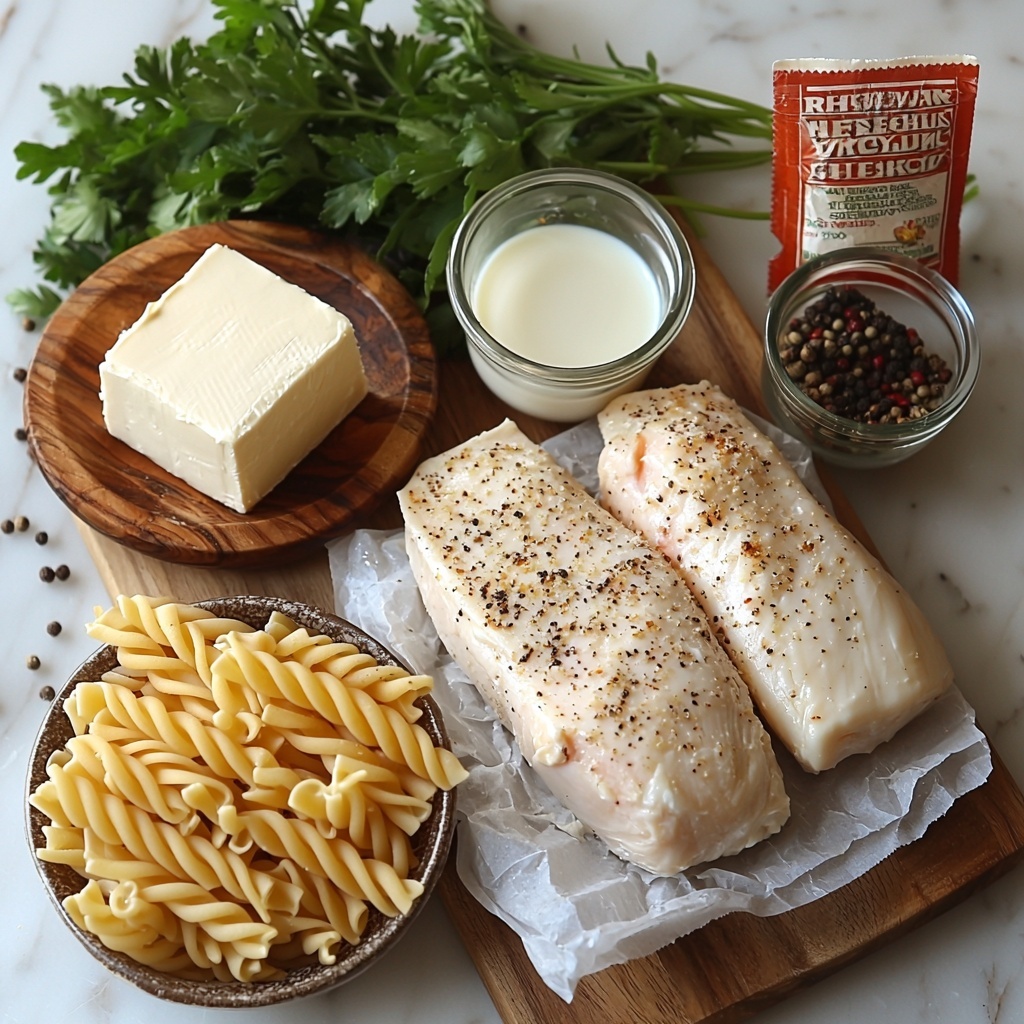 Gathering simple, yet essential ingredients is the first step in creating this fabulous pasta dish. Each component plays a special role, from the creamy tang of the cream cheese to the herbal goodness of fresh parsley, building layers of taste and color that make this recipe truly unforgettable.