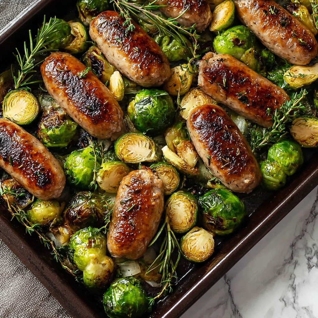 This recipe stands well on its own but pairs perfectly with a side of quinoa or brown rice for an added touch of wholesome fiber. A crisp green salad or light vinaigrette-dressed kale also complements the hearty sausage and roasted sprouts beautifully.