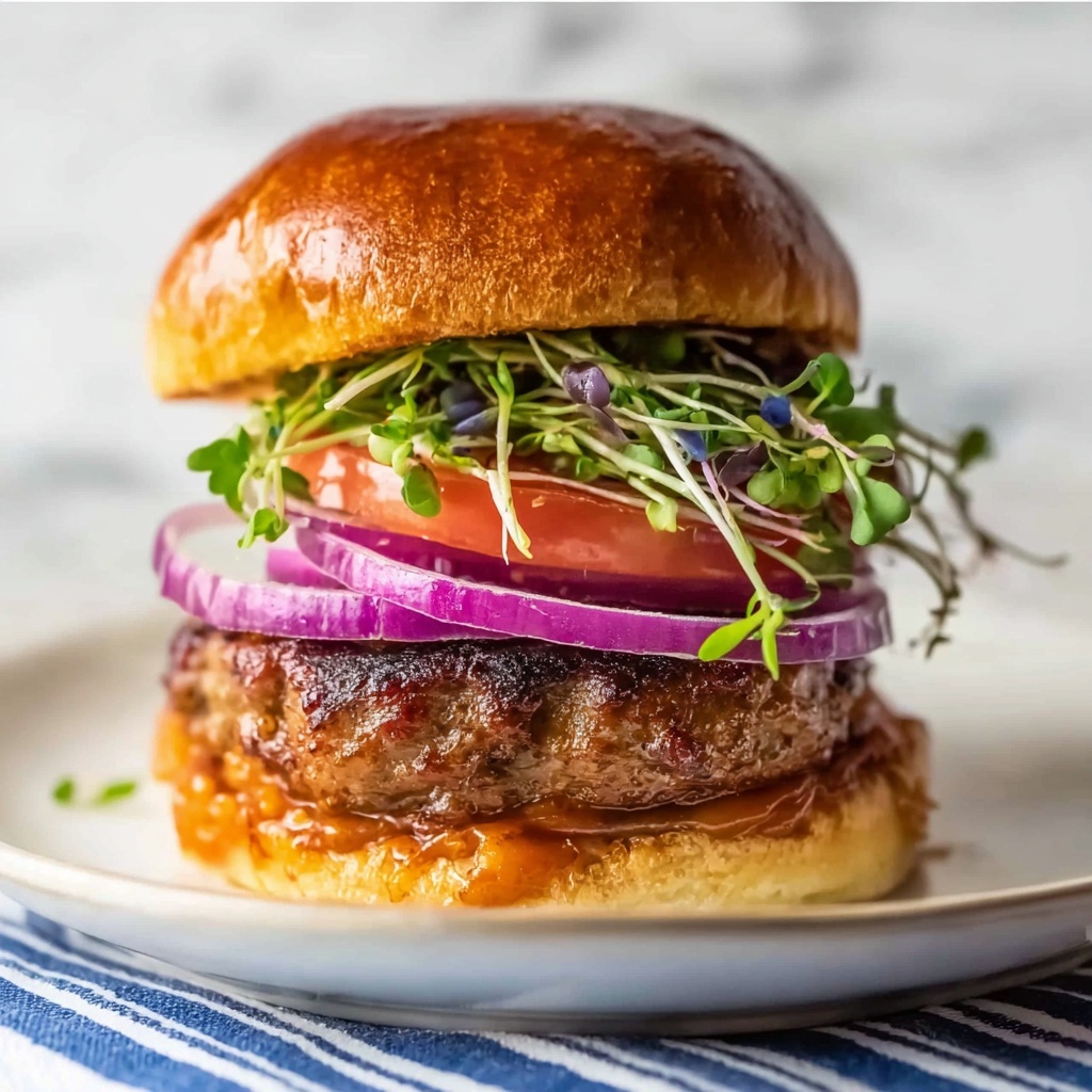While the Juicy Ground Turkey Burger Recipe is delicious on its own, simple garnishes can elevate your burger experience. Fresh sliced tomatoes bring juicy sweetness, while crisp onions add a lovely crunch and bite. Lettuce gives that refreshing crisp texture, and pickles add a zesty tang that balances the meat’s richness perfectly.