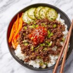 These Korean Beef Bowls are a quick and flavorful meal perfect for busy weeknights. Ground beef is simmered in a savory and slightly sweet sauce made from soy sauce, brown sugar, rice vinegar, and spices, then served over steamed white rice with fresh green onions, pickled or fresh vegetables, and optional spicy condiments for an authentic Korean-inspired bowl.