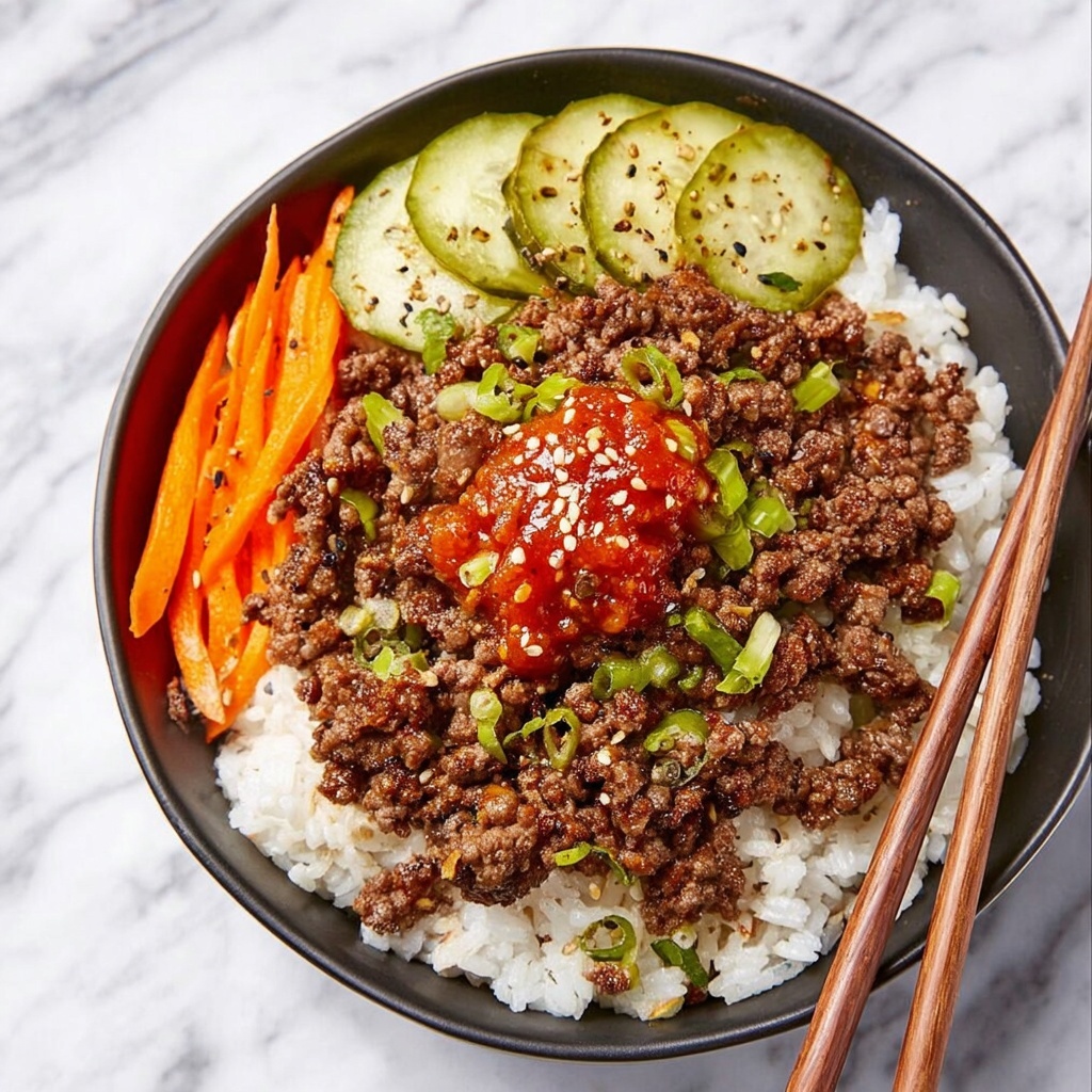 The finishing touches really elevate this Korean Beef Bowls Recipe. Scatter the remaining green onions over the top for freshness, sprinkle toasted sesame seeds for a bit of nuttiness and crunch, and add vibrant pickled or fresh carrots and cucumbers on the side. A dollop of gochujang or a drizzle of sriracha brings an optional spicy element that brightens every bite.