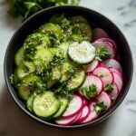 This refreshing Korean Cucumber Salad combines crisp cucumbers with a savory, tangy dressing made from rice vinegar, soy sauce, sesame oil, and a touch of sweetness. Enhanced with garlic, green onions, sesame seeds, and a hint of red pepper flakes, this quick and easy salad is perfect as a light side dish or appetizer that brings a burst of vibrant flavors to your table.