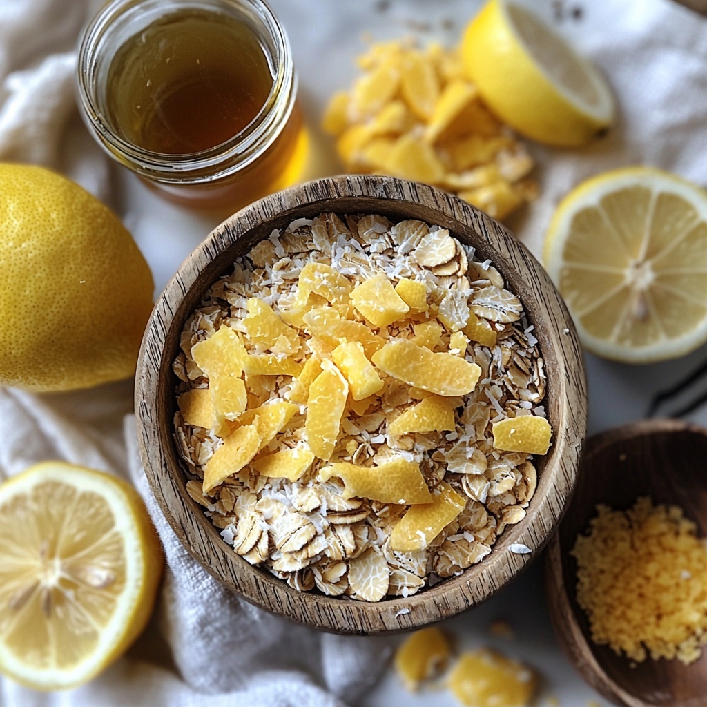 - Mix Dry Ingredients: In a large bowl, combine the rolled oats, unsweetened shredded coconut, fresh lemon zest, and a pinch of salt. Stir well to evenly distribute all dry components.