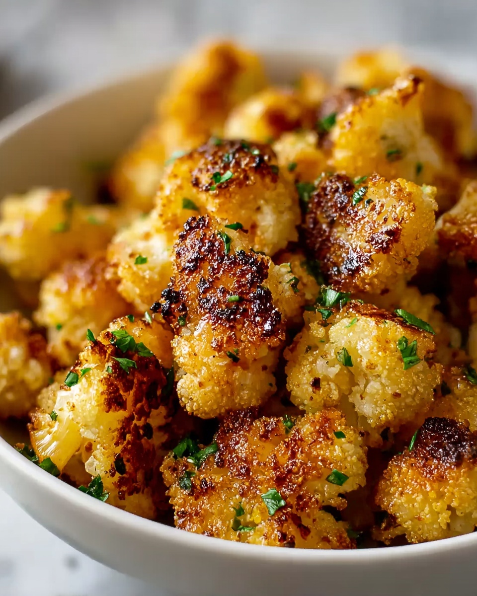 Place the coated cauliflower on your prepared baking sheet or into the air fryer basket, making sure to space them out so the heat circulates evenly. For baking, cook for 20 minutes, flip each floret, and bake for another 15 minutes until golden and crisp. If you’re air frying, cook for 15 to 18 minutes, shaking the basket halfway to get even browning all around.