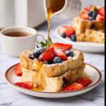 Simple garnishes like a dusting of powdered sugar and a drizzle of warm maple syrup instantly elevate this dish. If you want to go the extra mile, fresh berries such as blueberries, raspberries, or sliced strawberries add bright color and a refreshing bite against the richness.