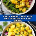 A fresh, vibrant mango salad featuring crisp romaine lettuce, juicy mangoes, and a zesty homemade dressing with lime, dill, and a touch of sweetness. Perfect as a light, refreshing side dish or a healthy snack.
