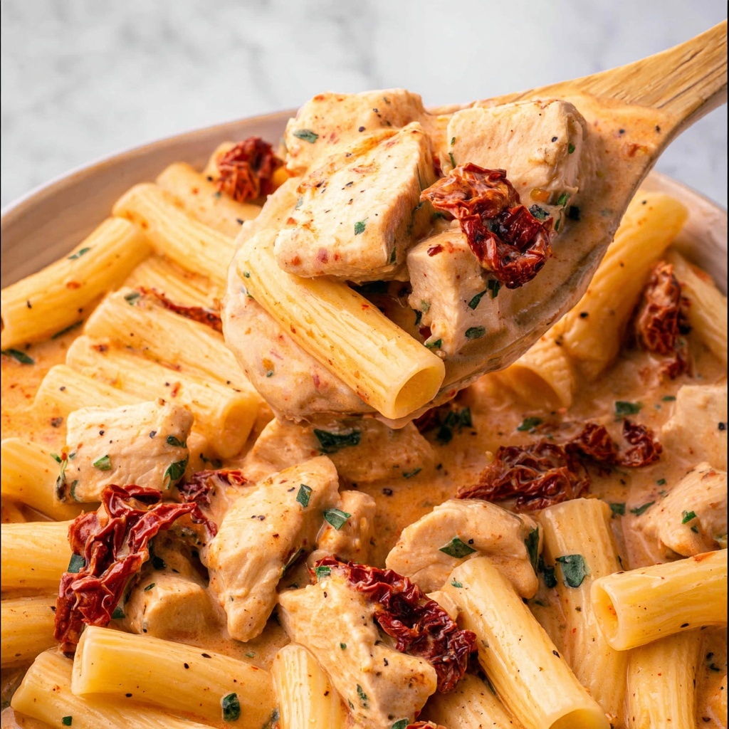 To make it vegetarian, substitute the chicken with sautéed mushrooms or tofu, and use vegetable broth instead of chicken broth. The sun-dried tomatoes and creamy sauce ensure plenty of flavor.