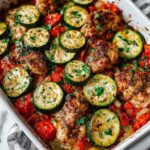 This Mediterranean Chicken Zucchini Bake is a wholesome, flavorful dish featuring tender seared chicken breasts layered with fresh zucchini, cherry tomatoes, aromatic herbs, and finished with tangy crumbled feta cheese. It’s a simple yet elegant one-dish meal perfect for a healthy lunch or dinner.