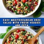 A refreshing and vibrant Mediterranean Orzo Salad featuring tender orzo pasta mixed with fresh cherry tomatoes, cucumber, bell peppers, red onion, and crumbled feta cheese, all tossed in a zesty lemon and olive oil dressing. Perfect as a light main course or a colorful side dish.