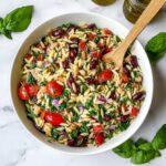 Keep any leftover Mediterranean Orzo Salad Recipe in an airtight container in the refrigerator. It stays fresh for up to 3 days, and the flavors often deepen and harmonize even more after resting overnight. Be sure to give it a quick stir before serving to redistribute the dressing.