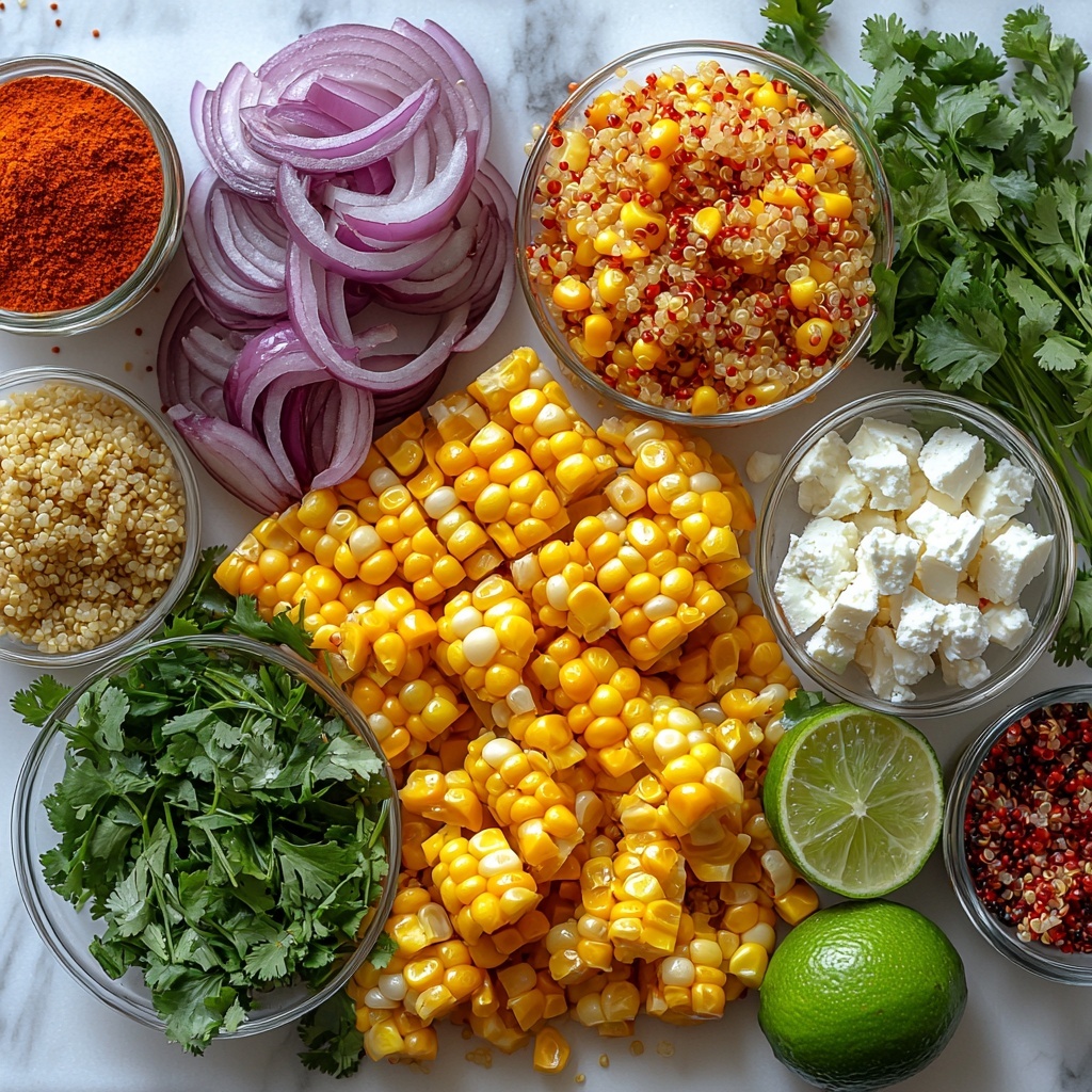 This recipe uses straightforward, fresh ingredients that each play a key role in creating its signature taste, texture, and vibrant appearance. From the wholesome quinoa to the zesty lime juice and salty cotija cheese, every element is essential for that perfect balance.