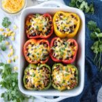 - Bake and Serve: Return the stuffed peppers to the oven and bake for another 5-10 minutes, or until the cheese is melted and bubbly and the peppers are tender. Serve immediately with optional toppings such as chopped cilantro, sour cream, and guacamole. Enjoy!