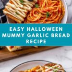 For a festive touch, arrange your mummy garlic bread on a platter with Halloween-themed decorations like mini pumpkins or faux spider webs. You can even serve the bread on a rustic wooden board or in a cast-iron skillet for a cozy, homestyle vibe that’s sure to impress your guests.