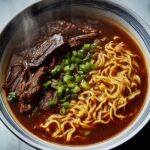 Garnishes elevate your bowl of beef noodles to another level. Freshly chopped scallions and cilantro add brightness, while blanched greens like bok choy offer a beautiful color contrast and a refreshing bite. Chili oil is the perfect optional kick that balances the rich, savory broth with a touch of spicy heat.