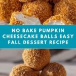 - Serve: Once the coating has hardened, these no-bake pumpkin cheesecake balls are ready to enjoy as a creamy, spiced, and festive fall dessert.