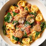 Definitely! Use plant-based sausage alternatives and swap heavy cream for coconut or cashew cream. Also, pick vegan tortellini or any filled pasta of choice for a fully vegan twist packed with bold, comforting flavors.