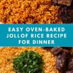 Serve your Oven-Baked Jollof Rice Recipe in colorful bowls or cast iron skillets for a rustic touch. You can even shape the rice using molds for individual servings at dinner parties, garnished with edible flowers or microgreens for a striking, Instagram-worthy look.