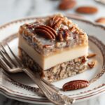 In a saucepan over medium heat, melt the remaining butter. Stir in the brown sugar, beaten eggs, light corn syrup, and vanilla, stirring constantly until the mixture thickens just the way pecan pie filling should — this usually takes 5 to 7 minutes. Remove from heat and fold in the chopped pecans, then carefully spread this rich, nutty filling over the cream cheese layer. This gooey layer is the heart and soul of the Pecan Pie Lasagna Recipe.