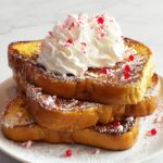 - Serve and Garnish: Once cooked, plate the French toast slices, top with a generous swirl of whipped cream, and sprinkle with crushed peppermint candies for a festive touch and added crunch.
