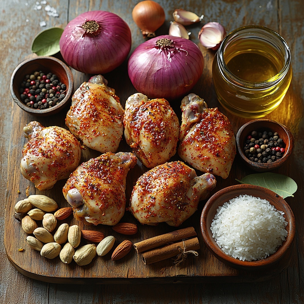 Gathering the right ingredients is key to making this Persian Chicken with Spiced Basmati Rice and Almonds Recipe come alive in your kitchen. Each spice and component plays an essential role, building layers of flavor, texture, and that irresistible golden hue that makes this dish so inviting.