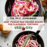 This quick and easy recipe for Pickled Red Onions provides a tangy, vibrant condiment that adds a burst of flavor to tacos, salads, sandwiches, and more. Made with simple pantry ingredients like apple cider vinegar, sugar, and spices, these pickled onions come together in just 20 minutes, making them a perfect quick pickle for enhancing any meal.
