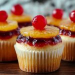 These Pineapple Upside-Down Cupcakes feature moist, buttery cake topped with caramelized brown sugar, pineapple rings, and optional maraschino cherries for a classic retro dessert in convenient individual portions. Perfect for parties or a sweet treat, these cupcakes combine the tropical tang of pineapple with a rich, fluffy cake base.
