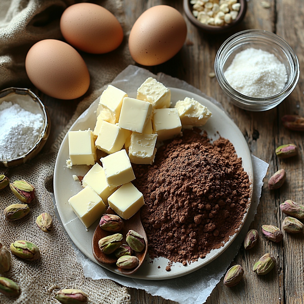 - Shelled pistachios (1 cup): Chopped to add a delightful crunch and subtle nuttiness throughout the brownies.