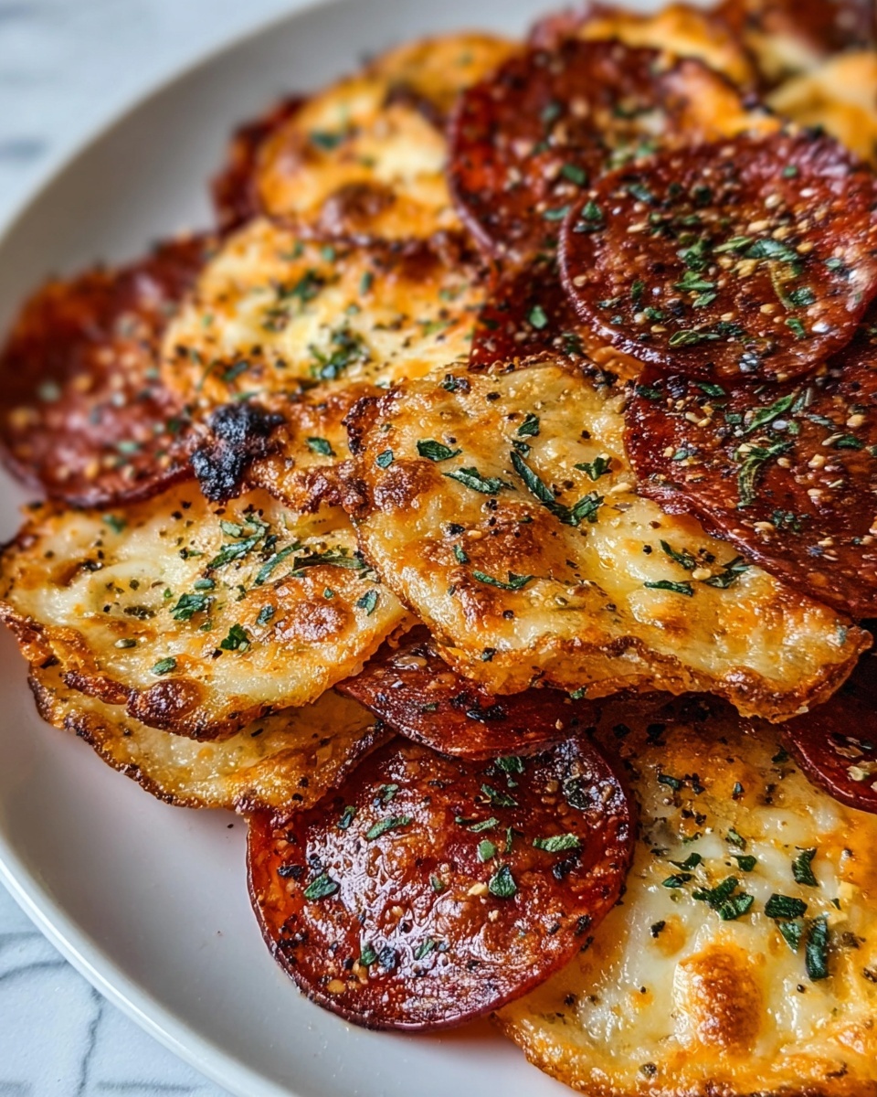 These Pizza Chips are a crispy and flavorful snack that encapsulates all the deliciousness of pizza in bite-sized form. Ideal for parties, casual get-togethers, or a cozy night in, they are quick to prepare, customizable, and perfect for dipping in warm pizza sauce.