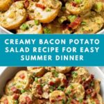 This Potato Salad with Bacon and Fresh Herbs Recipe pairs wonderfully with grilled meats like chicken, steak, or burgers. It also complements lighter dishes such as grilled vegetables or a crisp green salad, offering a creamy accompaniment that balances smoky, fresh, and tangy flavors.