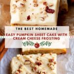 - Frost Cake: Spread the cream cheese frosting evenly over the cooled pumpkin sheet cake.