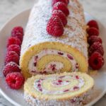 This Raspberry Swiss Roll Cake is a light and airy dessert featuring a delicate sponge cake rolled with luscious raspberry preserves, mascarpone cream, and fresh raspberries. Ideal for special occasions, this dessert combines a tender cake texture with rich creaminess and tart fruit, creating a balanced and elegant treat.