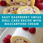 - Assemble the Swiss roll. Unroll the cooled cake carefully and spread the raspberry preserve mixture evenly over the surface. Layer the sliced fresh raspberries over the preserves. Then, spread an even layer of the mascarpone whipped cream over the berries. Carefully re-roll the cake without the towel, wrap it in plastic wrap, and refrigerate for at least 1 hour to set the cream. Before serving, dust the cake with confectioners’ sugar and decorate with the reserved whole fresh raspberries.
