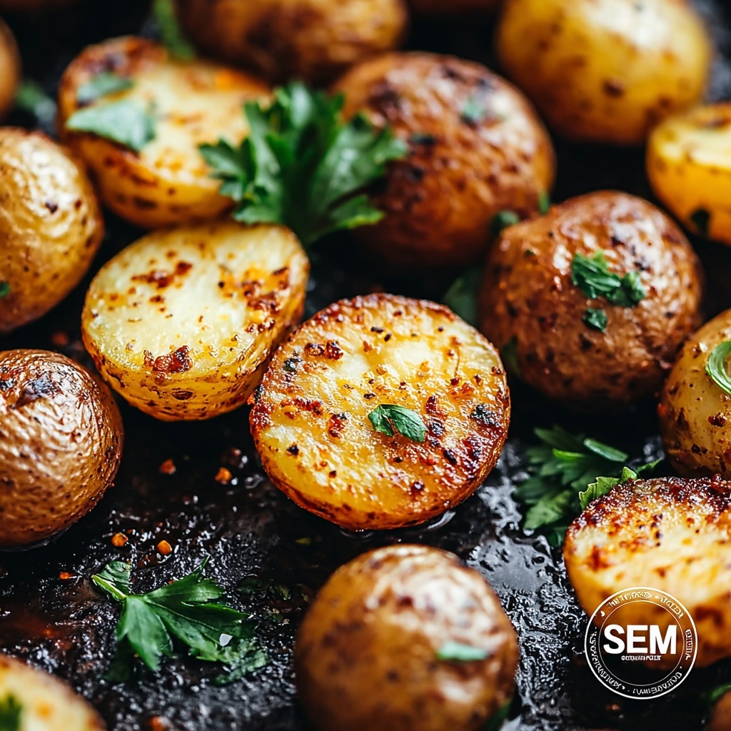 - Garnish and Serve: Once roasted, remove the potatoes from the oven and transfer them to a serving dish. Sprinkle with fresh chopped parsley for a bright, fresh finish before serving.