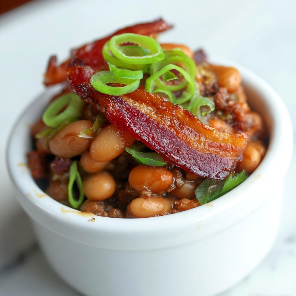 Bring these baked beans to any gathering by serving them in rustic cast iron skillets or colorful oven-safe bowls. If you want to get fancy, spoon the beans over grilled polenta rounds or even stuffed into baked sweet potatoes. Using small ramekins topped with a mini bacon strip transforms this humble side into a party-worthy appetizer.